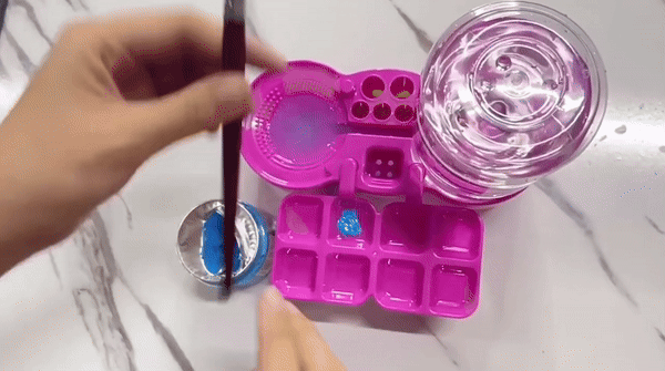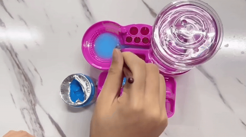 1. Rinse Your Brush – Place your brush in the cleaning slot and gently swirl to loosen paint.